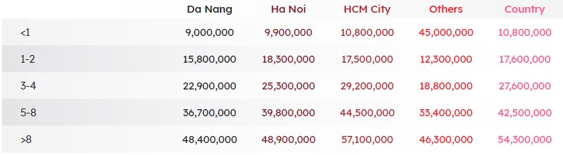 地域ごとに比べると、ダナンはホーチミンよりも平均月収が約2割安いことがわかります。